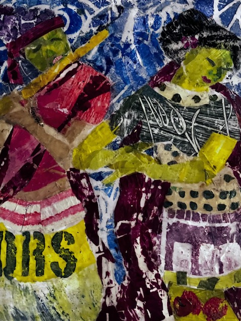 Using paint, wax paper, and stencils we will create fanciful collage designs on mat board.